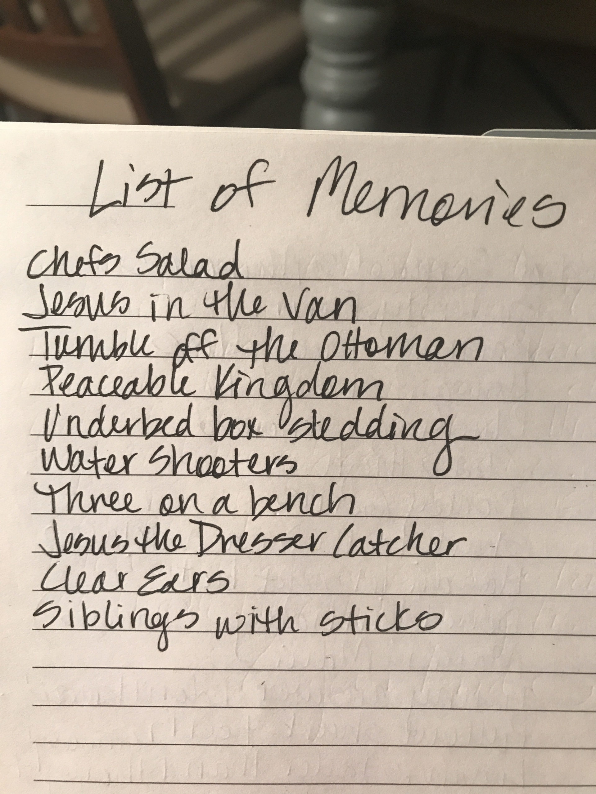 They have been so simple and fun to implement. Many have come from the books The 4 Habits of Raising Joy-Filled Kids and The 4 Habits of Joy-Filled Marriages (and there are youversion reading plans too). My favorite lately has been giving memories names (attached) and reviewing my list often. My 7-year-old has a list too! Life Model Works is a great resource as well.