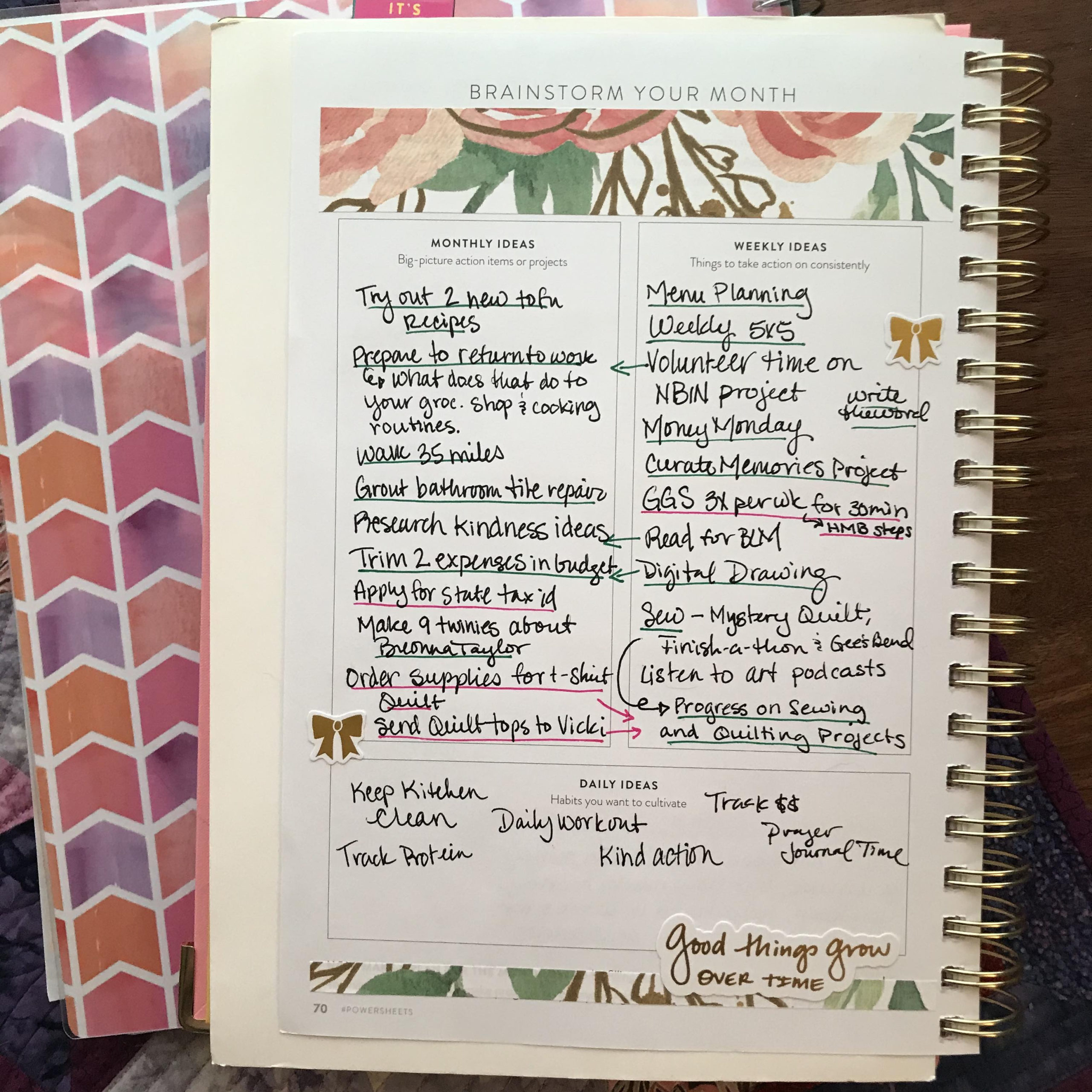 The prepare well page is usually enough brainstorming for me for that month, so I actually use the “brainstorm your month” page during the month to write notes/ideas for NEXT month. So in Feb, I wrote ideas I had that popped up as something to consider for March. Works for me better that way!